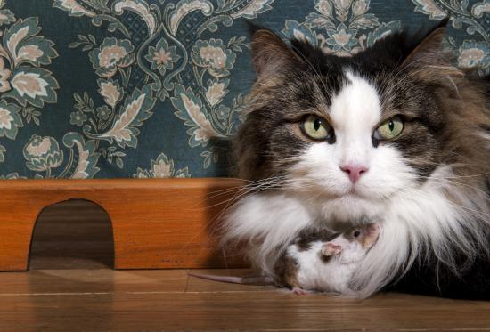 » Wallpaper Big fluffy cat with mouse