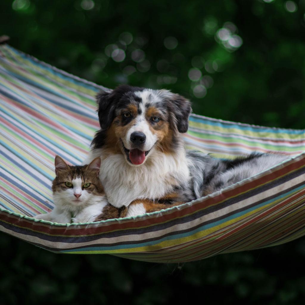 Wallpaper A dog and a cat lie in a hammock