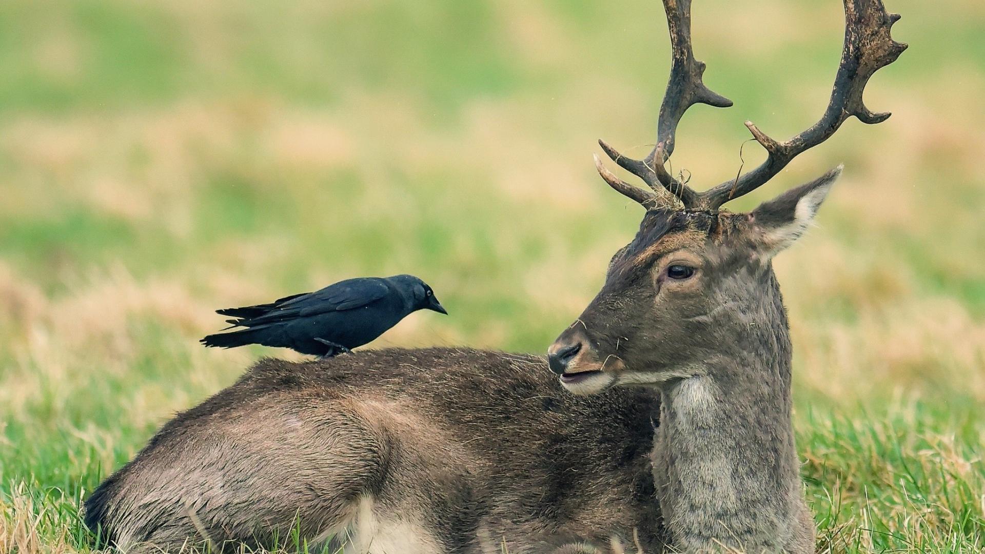 » Wallpaper Raven sitting on a deer forest