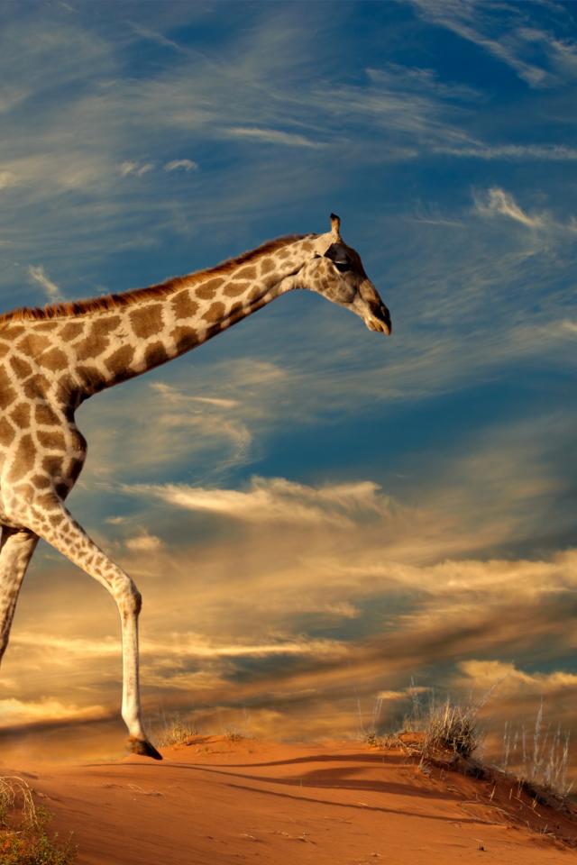 Wallpaper Big giraffe under a beautiful cloudy sky