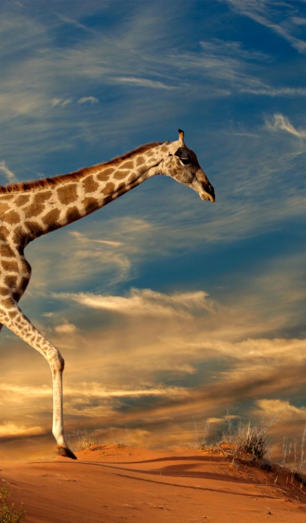 Wallpaper Big giraffe under a beautiful cloudy sky