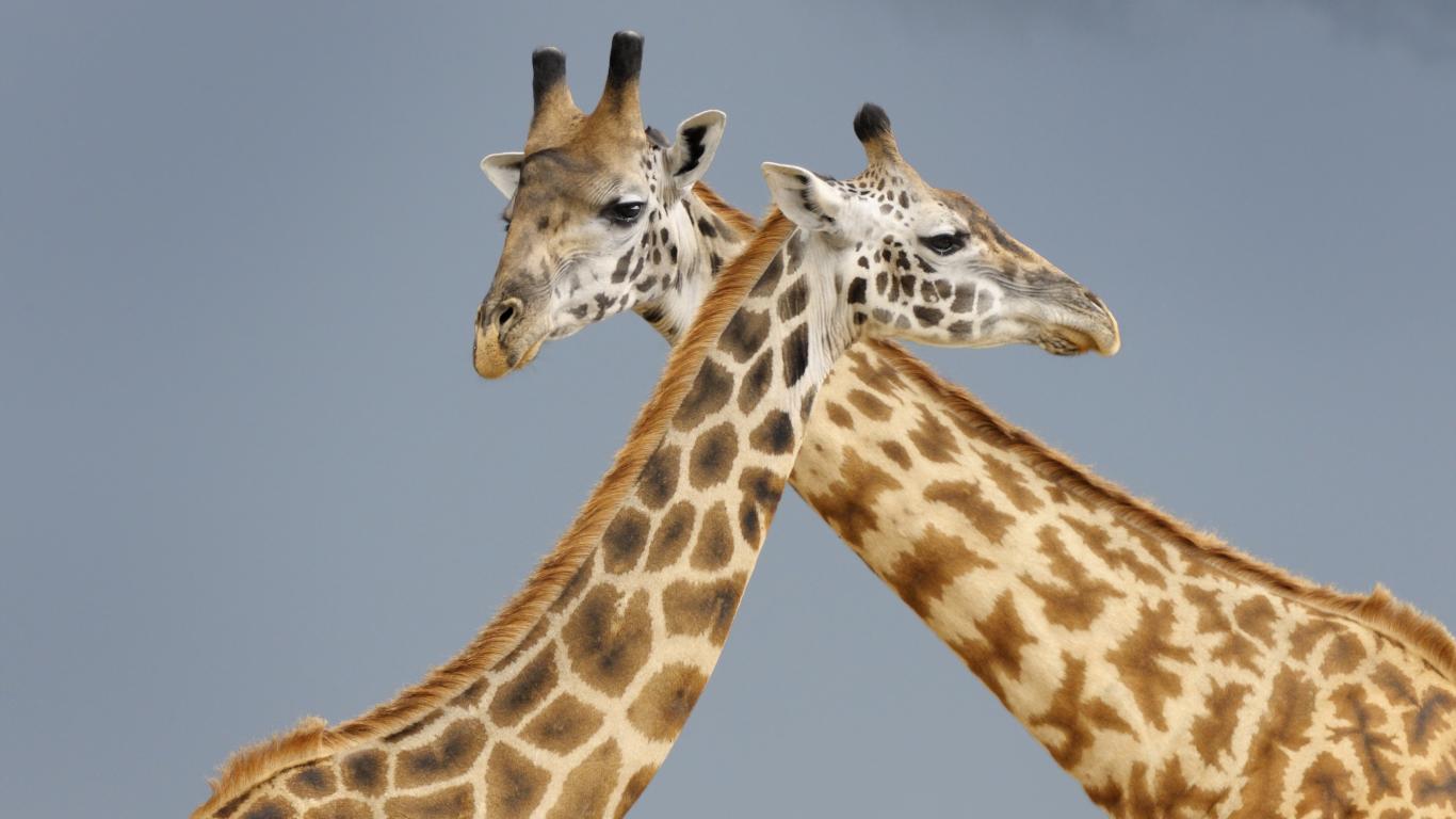 » Wallpaper Two giraffe on a gray background