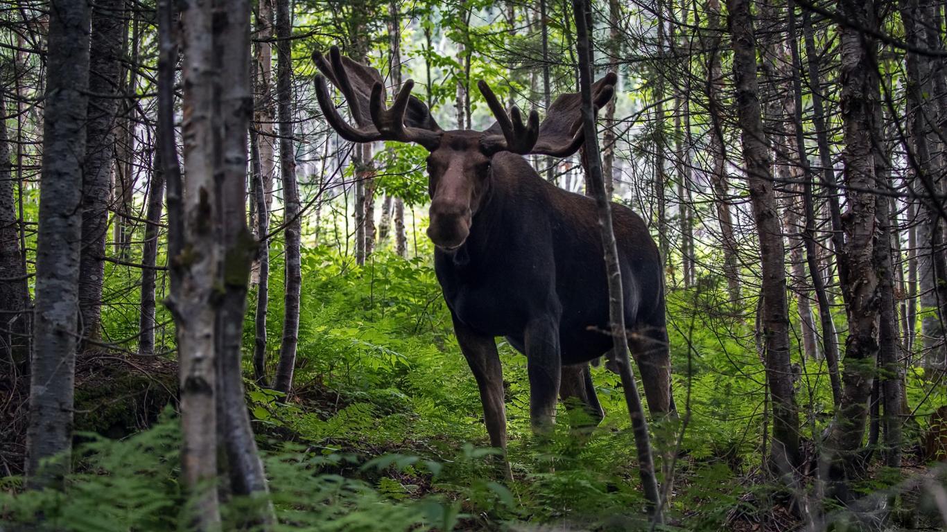 Wallpaper Elk with big horns in the forest.