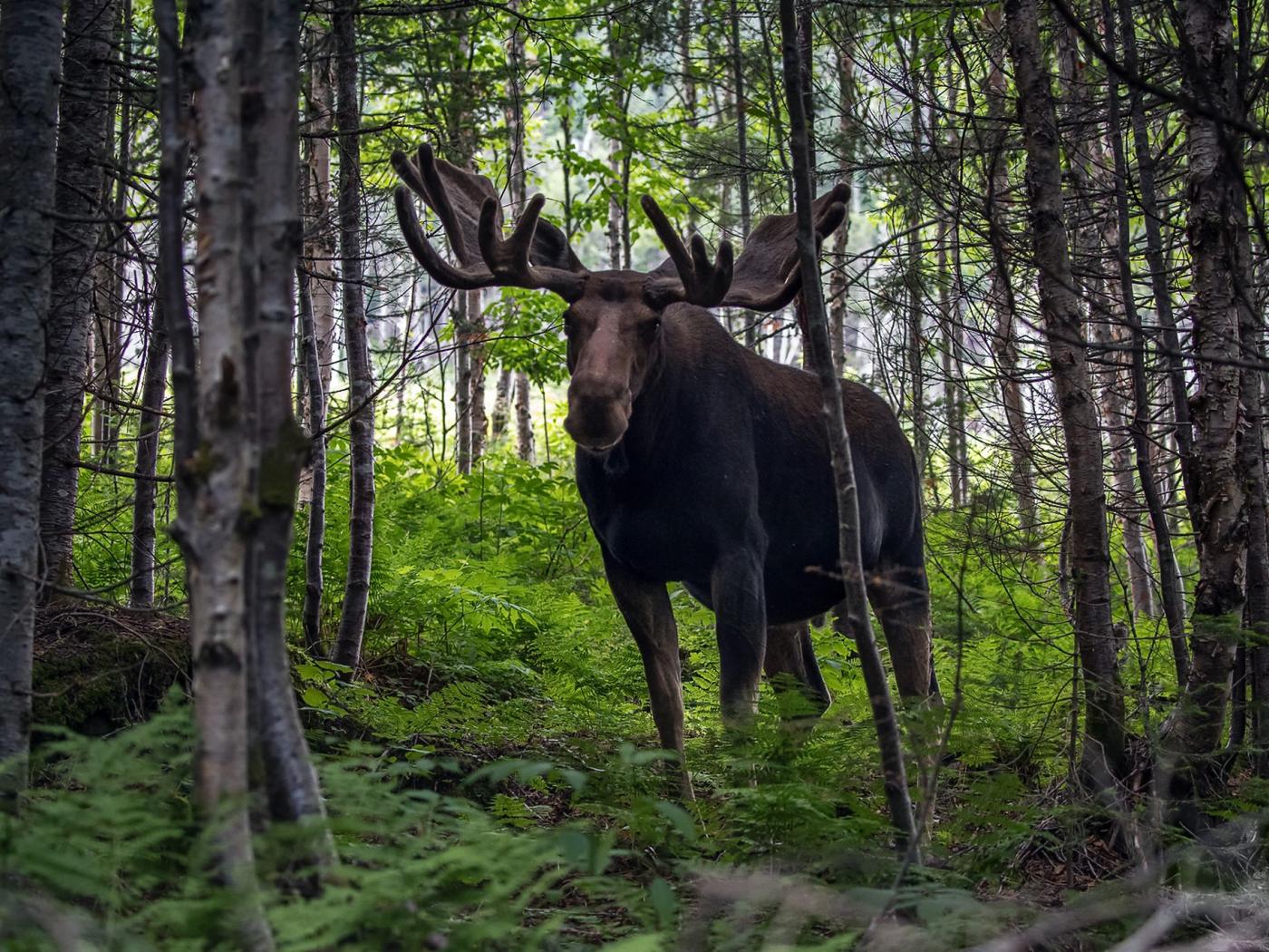Wallpaper Elk with big horns in the forest.
