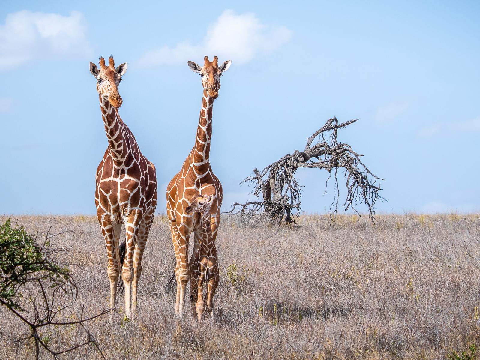 Wallpaper Two giraffes walk on the dry grass in the savannah