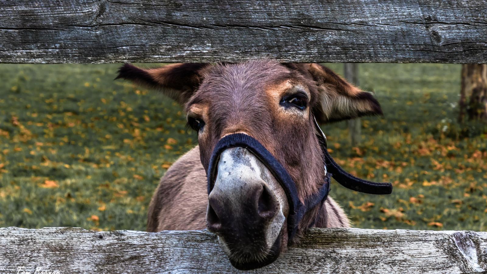 Wallpaper Curious donkey in a fence