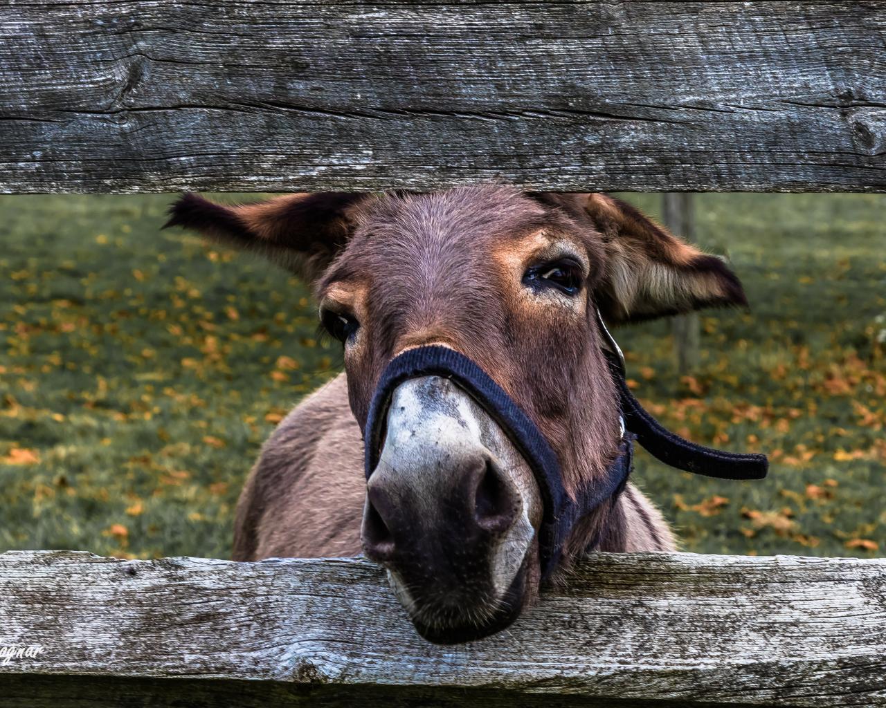 Wallpaper Curious donkey in a fence