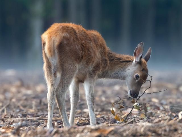 Wallpaper A female deer grazes in the forest