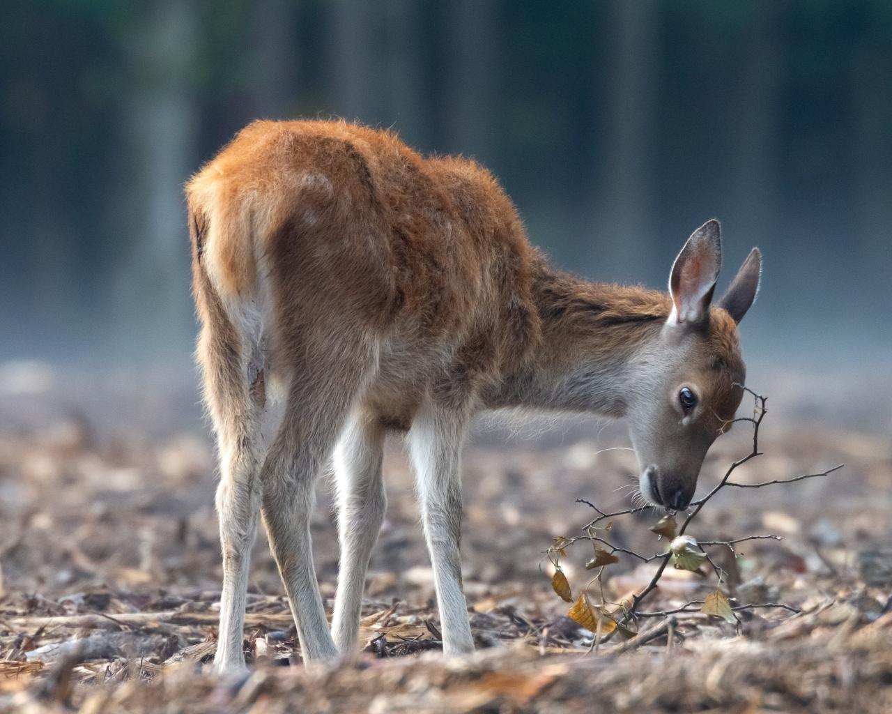 » Wallpaper A female deer grazes in the forest