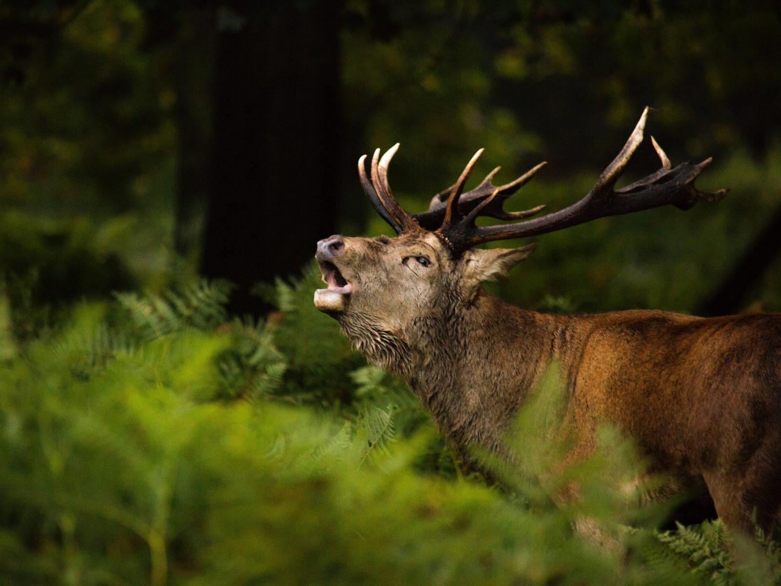 Wallpaper Big deer shouts in the forest in green grass