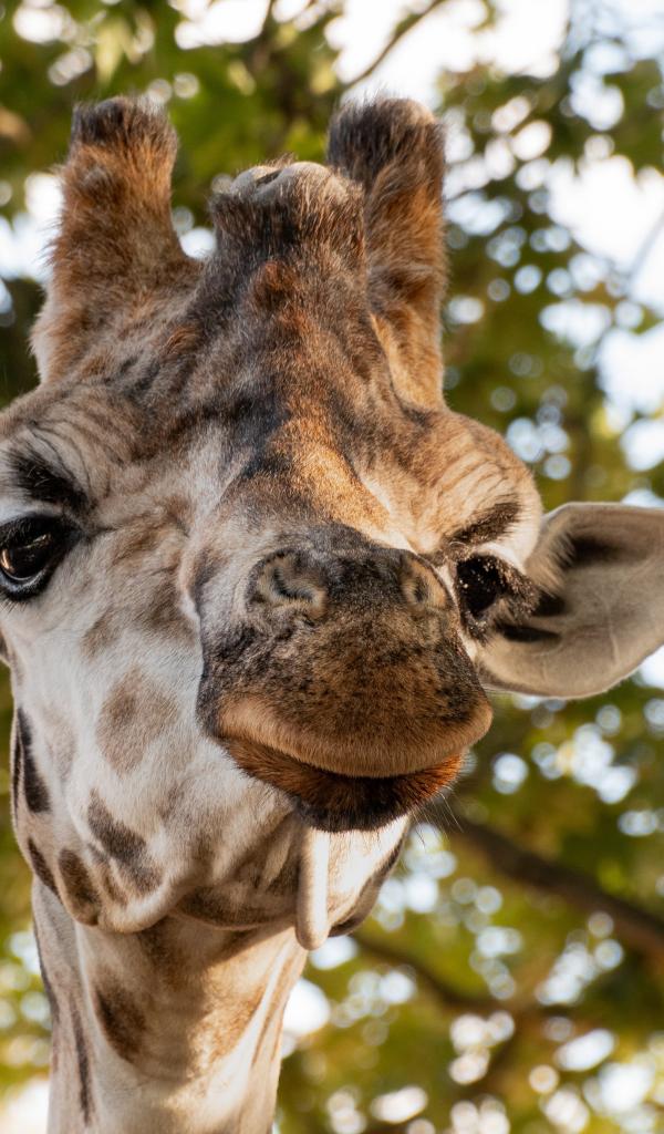 Wallpaper Giraffe head close up on wood background