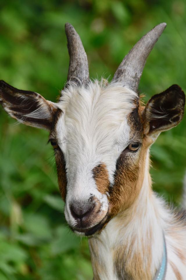 Wallpaper Little goat on a background of green grass