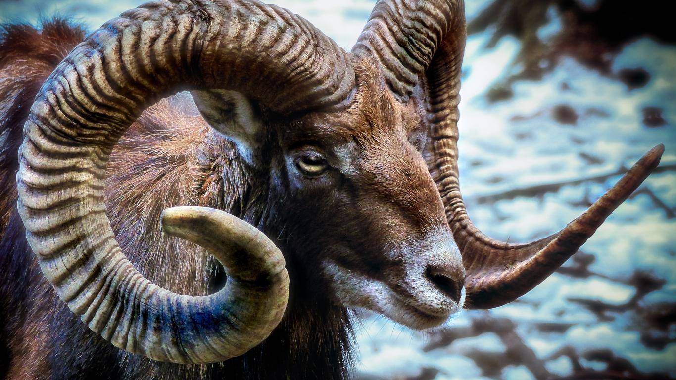 Wallpaper Wild mouflon with big horns