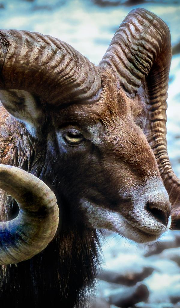 Wallpaper Wild mouflon with big horns