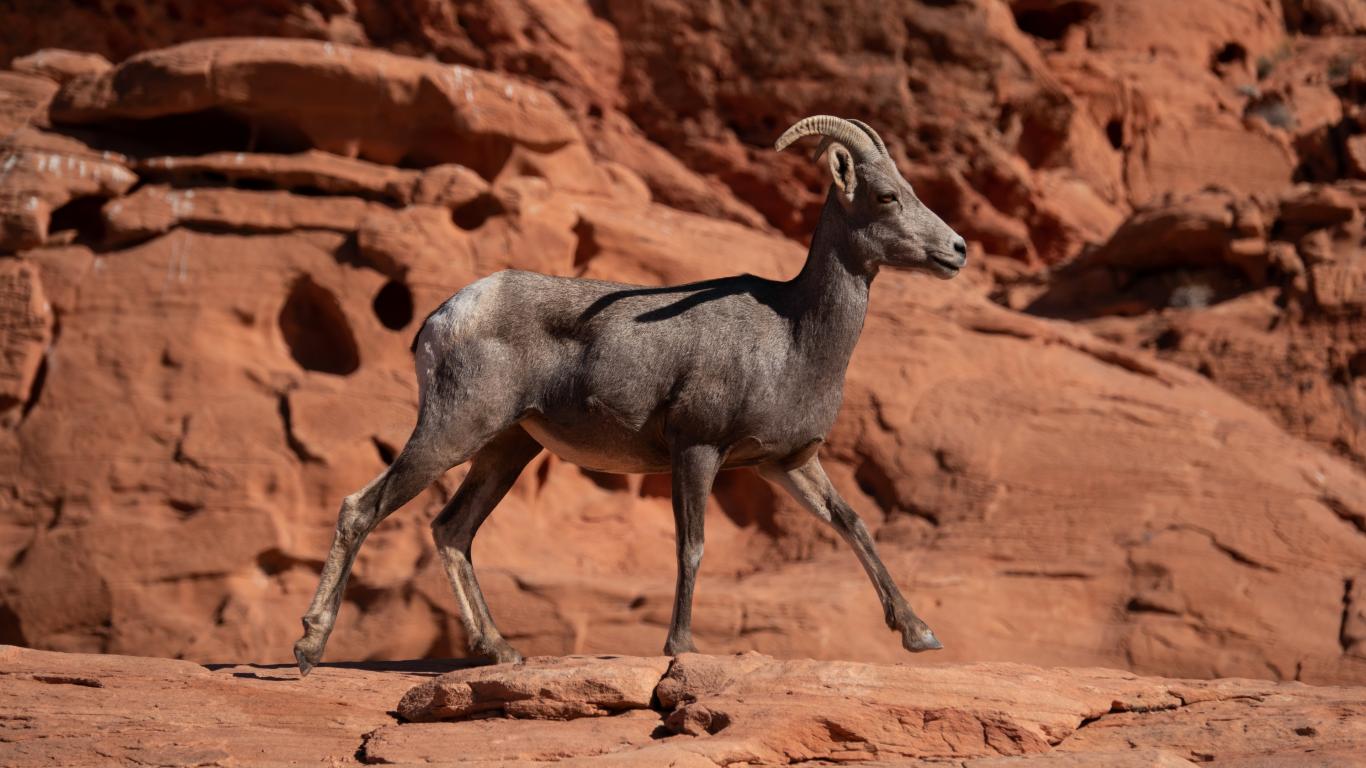Wallpaper Nubian mountain goat walks over stones