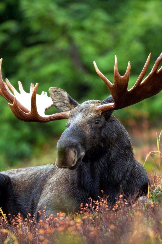 Wallpaper Elk with large antlers lies on the grass