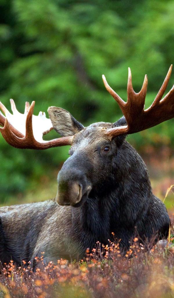 Wallpaper Elk with large antlers lies on the grass