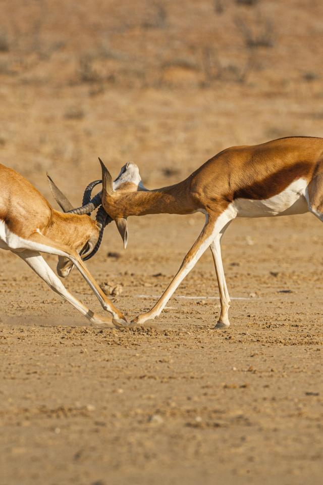 Wallpaper Two gazelles fighting in the savannah