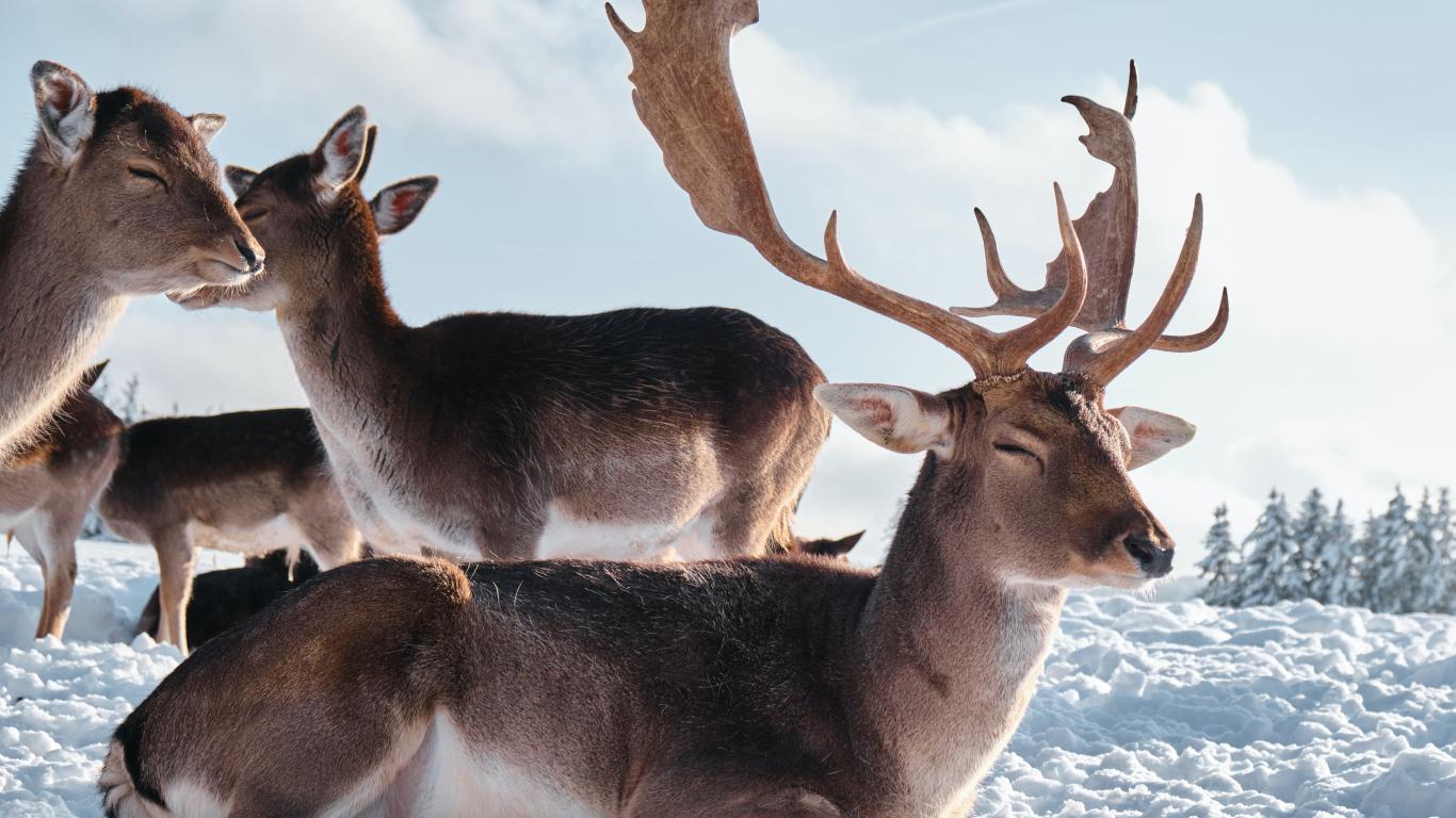 Wallpaper A herd of reindeer in the sun on the snow