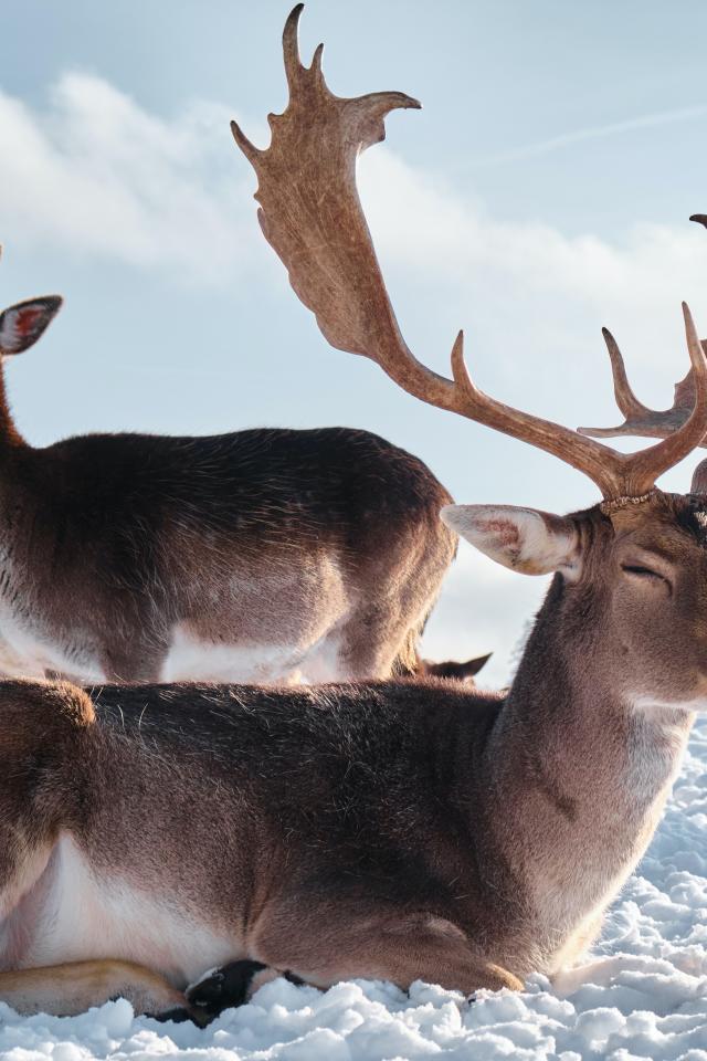 Wallpaper A herd of reindeer in the sun on the snow
