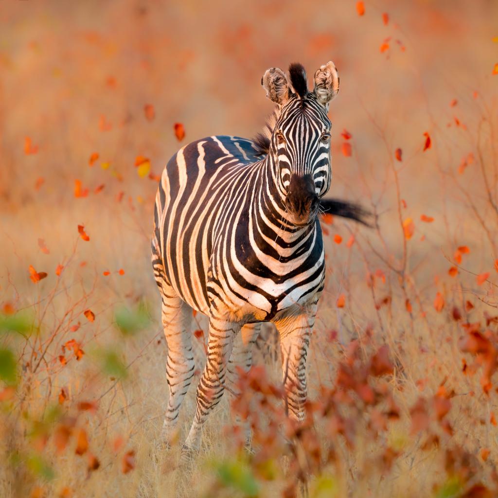 Wallpaper Striped zebra walking on dry grass