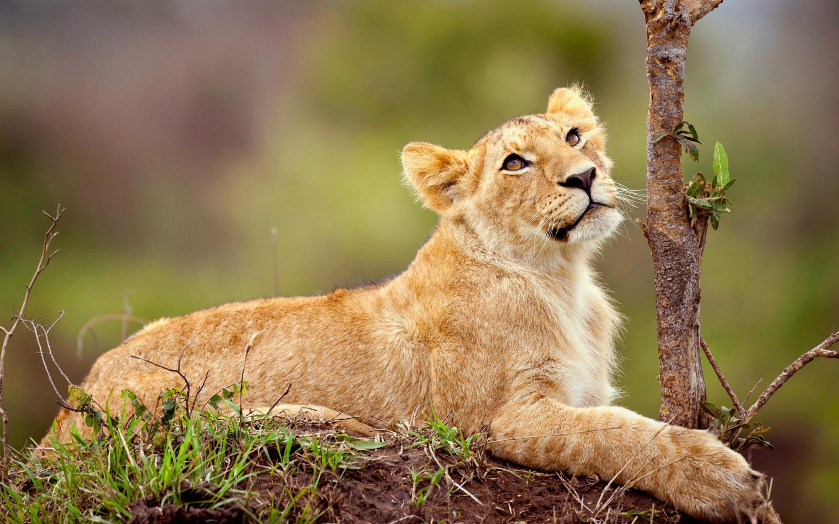 Wallpaper Little lion cub looking up