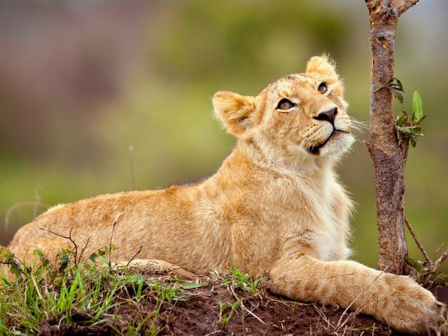 Wallpaper Little lion cub looking up