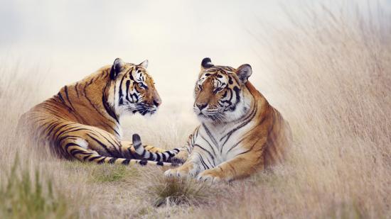Wallpaper Tigers Couple lying on the grass