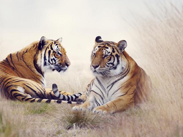 Wallpaper Tigers Couple lying on the grass