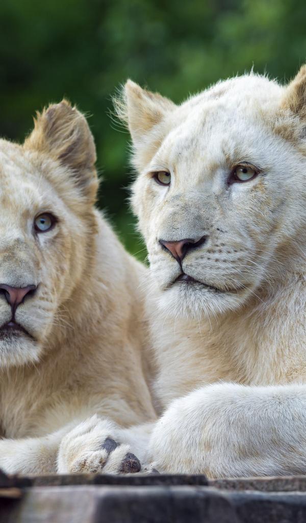 Wallpaper Two white lionesses with blue eyes
