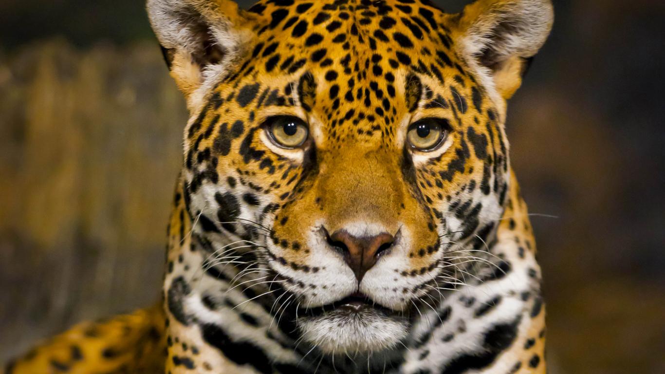 Wallpaper A beautiful jaguar sneaks along the snow-covered ground