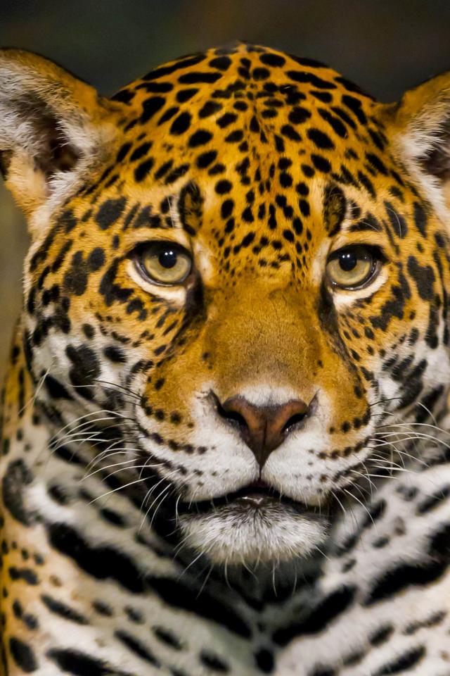 Wallpaper A beautiful jaguar sneaks along the snow-covered ground