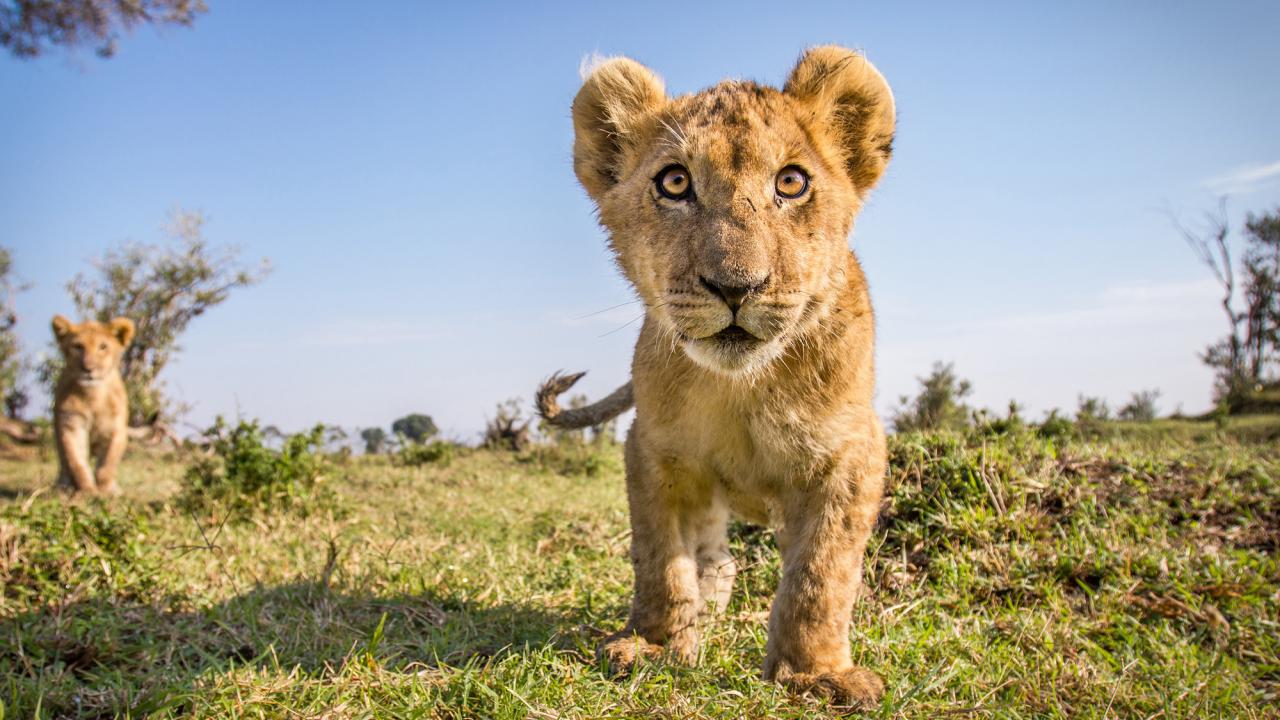 Wallpaper Interested look of a little lion cub