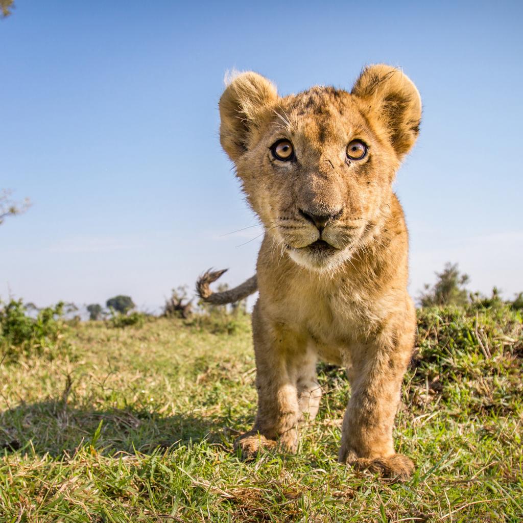Wallpaper Interested look of a little lion cub
