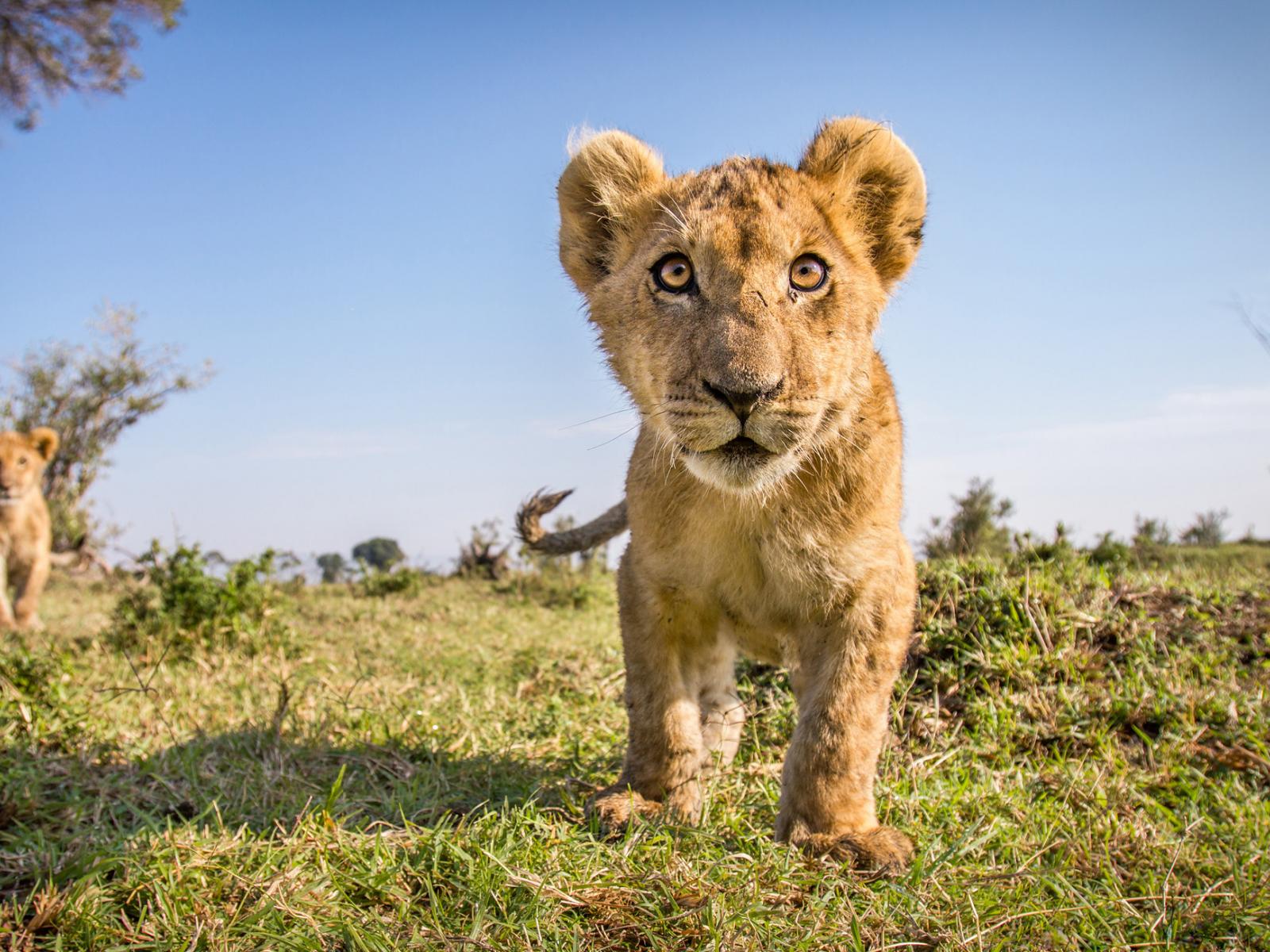 Wallpaper Interested look of a little lion cub