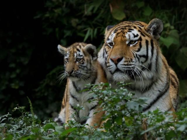 Wallpaper Large tigress with small calf