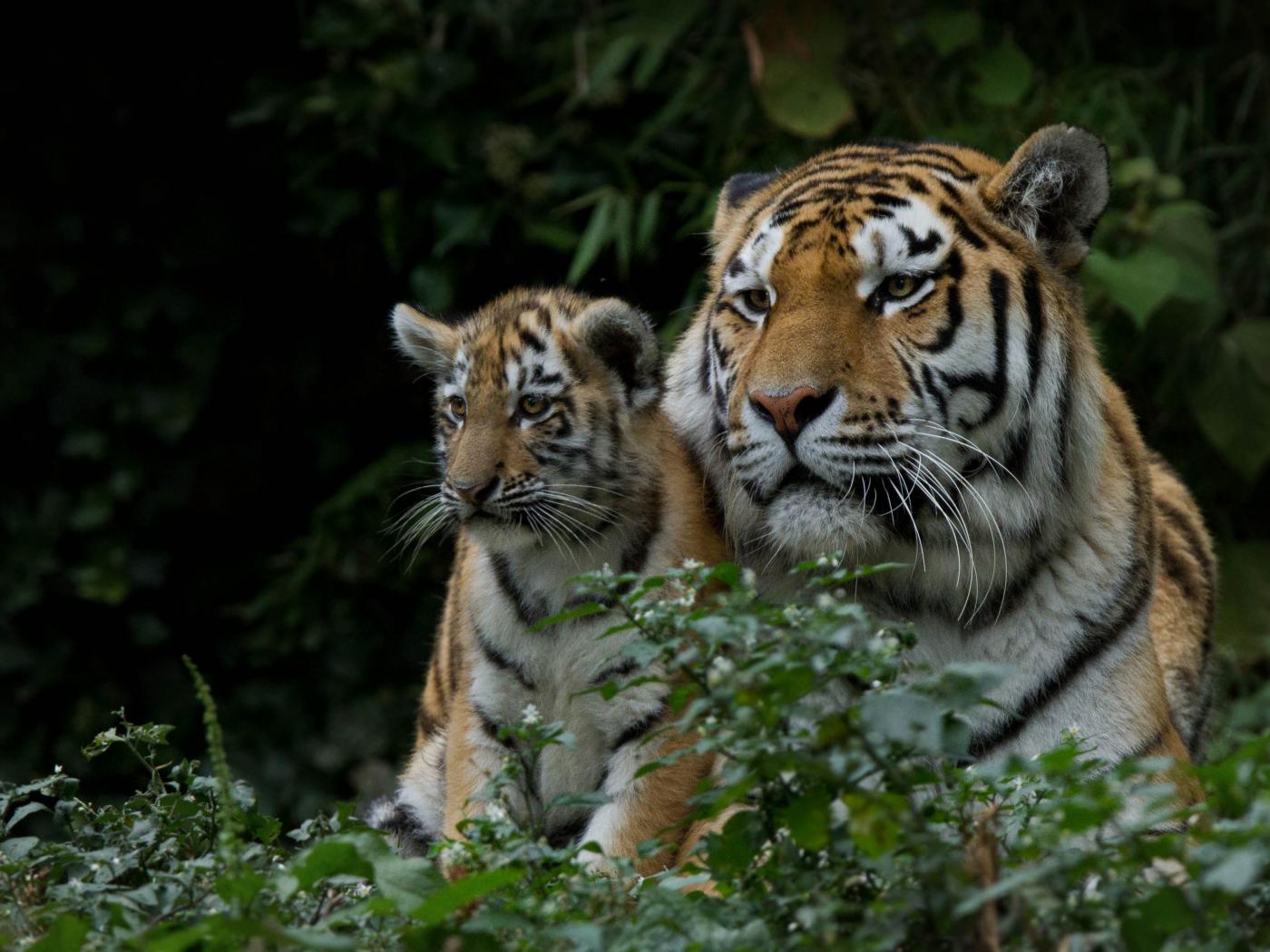 » Wallpaper Large tigress with small calf