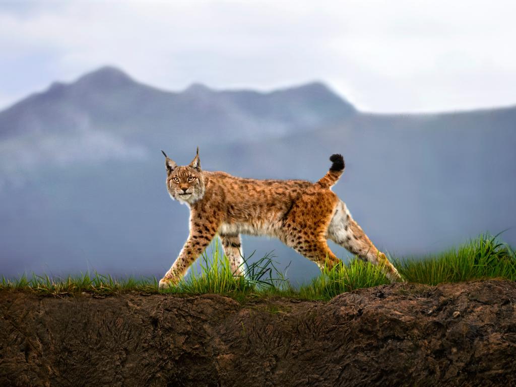 Wallpaper A look of graceful lynx on the background of the mountains