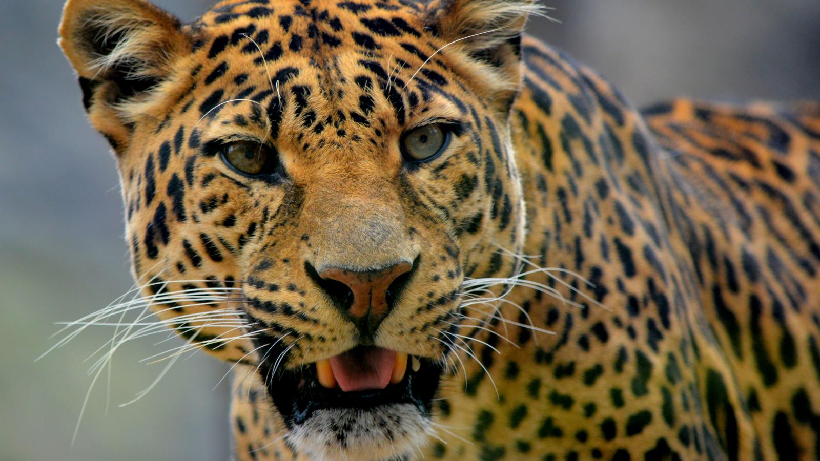 Wallpaper Spotted leopard with open mouth