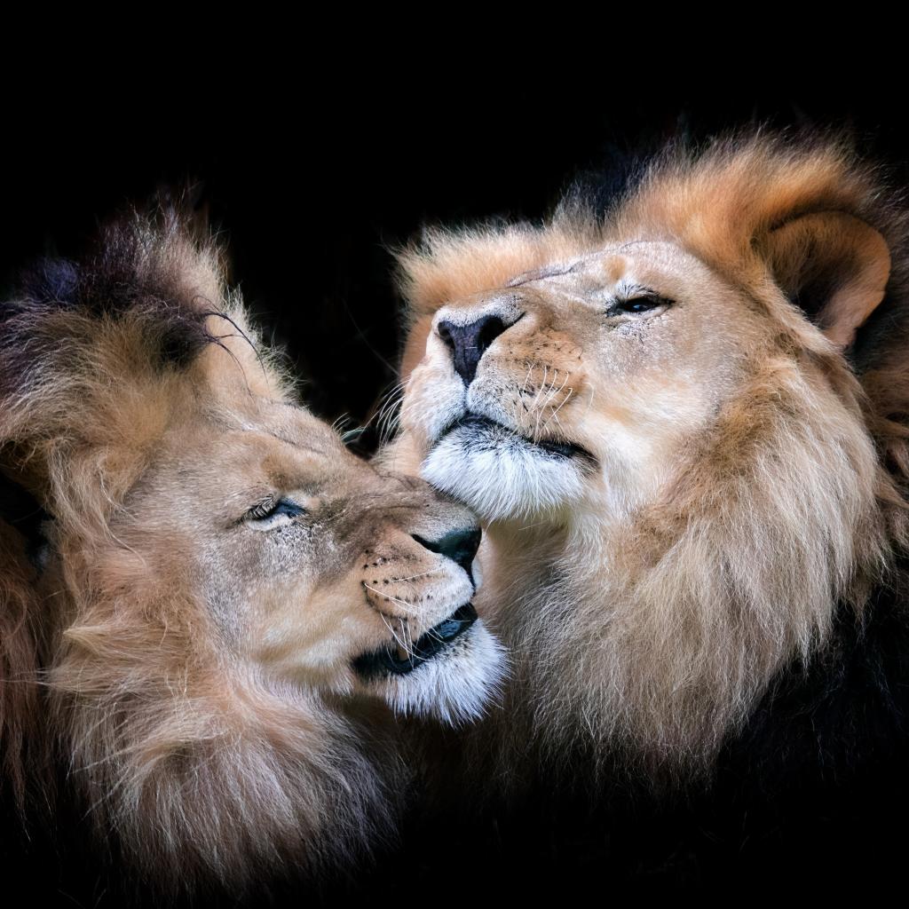 Wallpaper Two muzzle lions on a black background