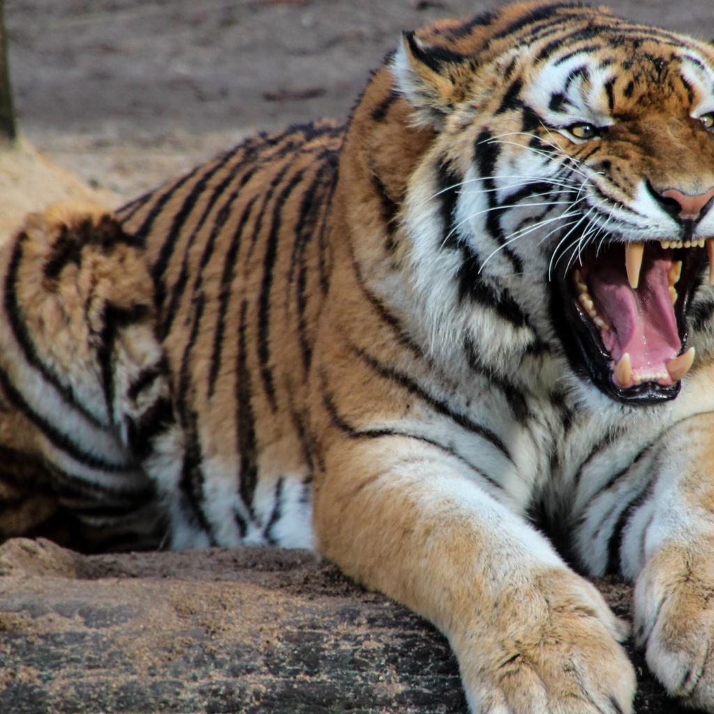 Wallpaper Terrible grin of a beautiful tiger