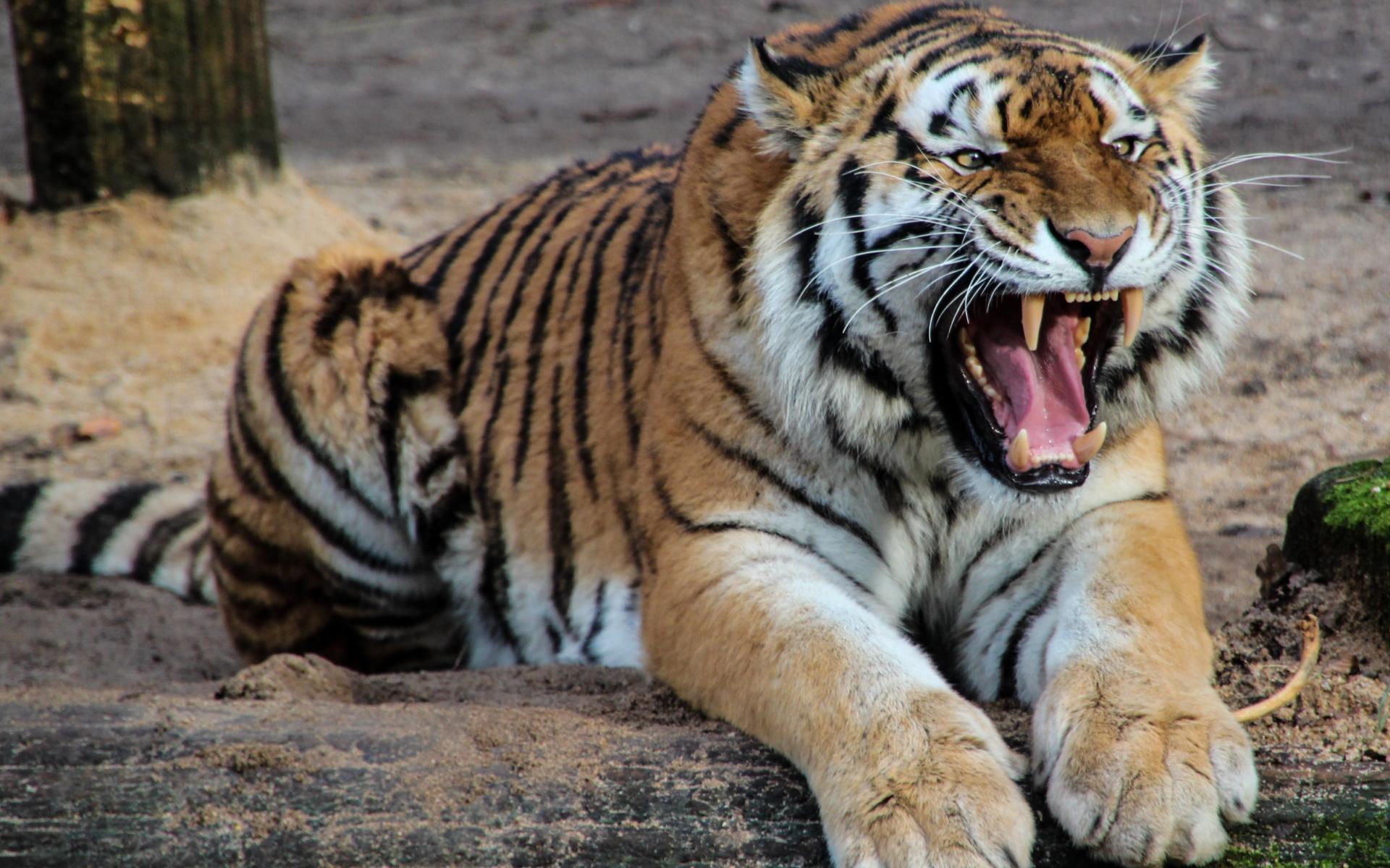 Wallpaper Terrible grin of a beautiful tiger