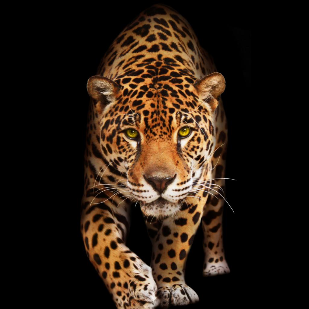Wallpaper Crawling predatory leopard on a black background