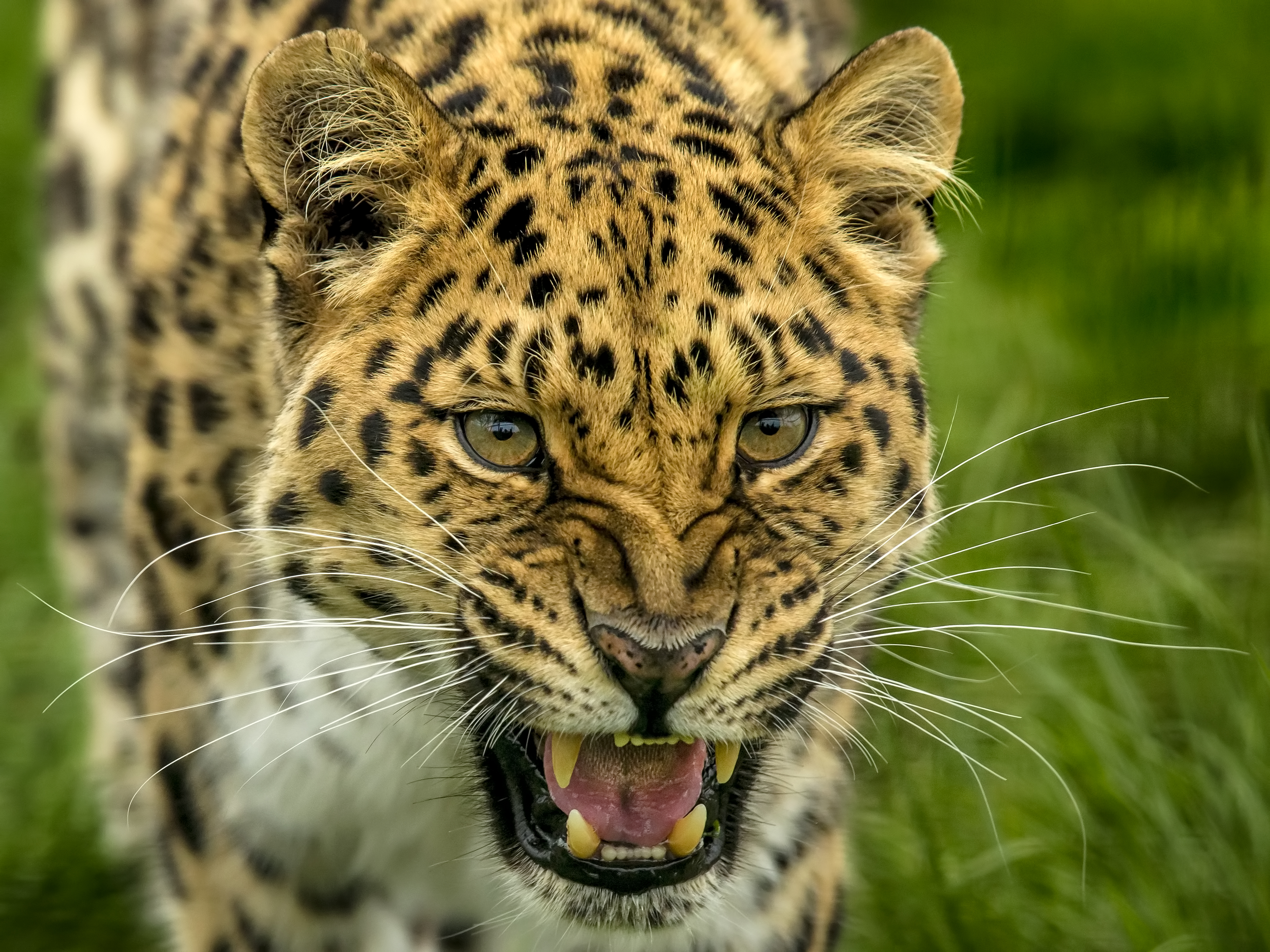 Wallpaper The fierce muzzle of a spotted leopard