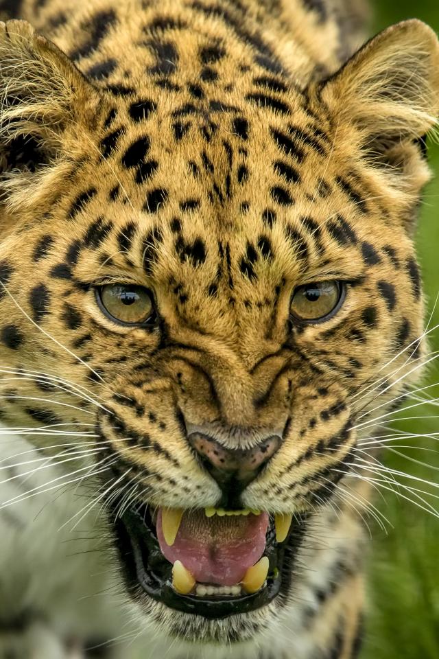 Wallpaper The fierce muzzle of a spotted leopard