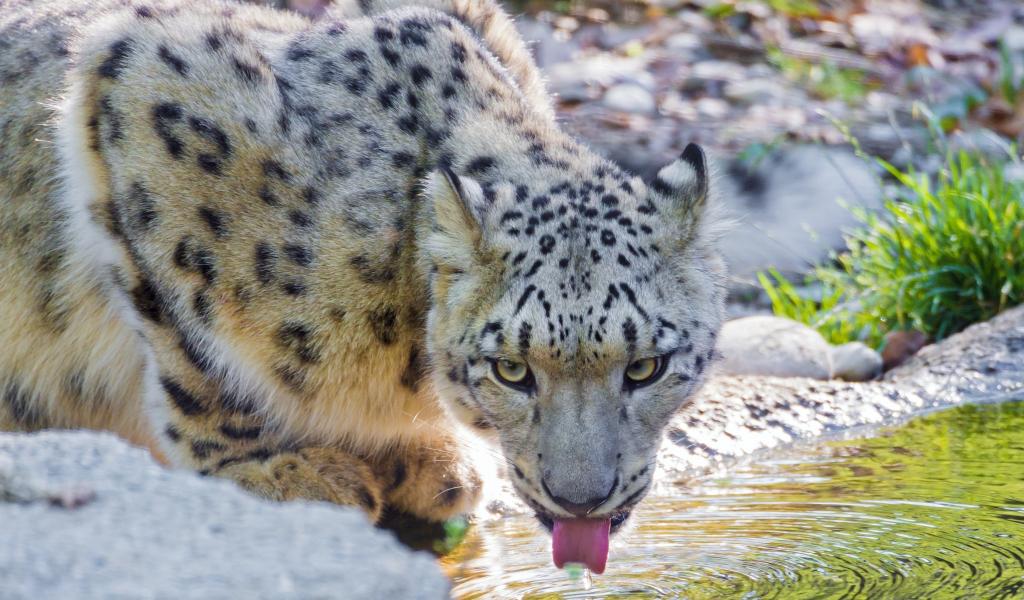 Wallpaper Snow leopard at the watering hole