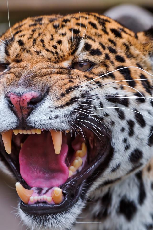 Wallpaper Aggressive big spotted leopard
