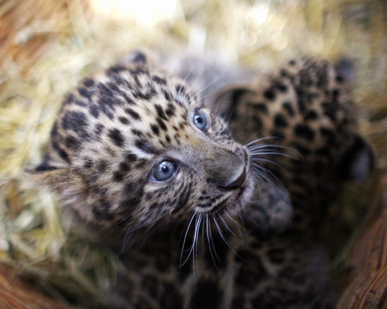 Wallpaper Little scared young leopard cub in the basket