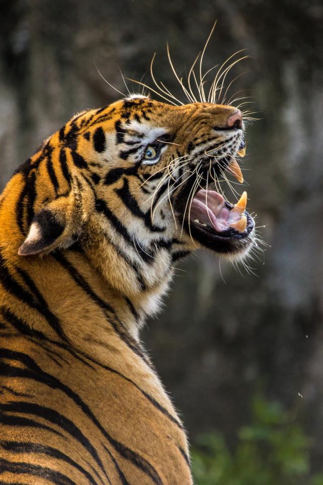 Wallpaper Terrible grin of a large striped tiger