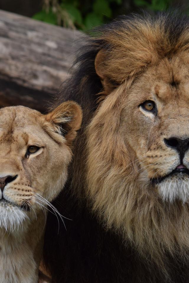 » Wallpaper Big lion and lioness in the zoo
